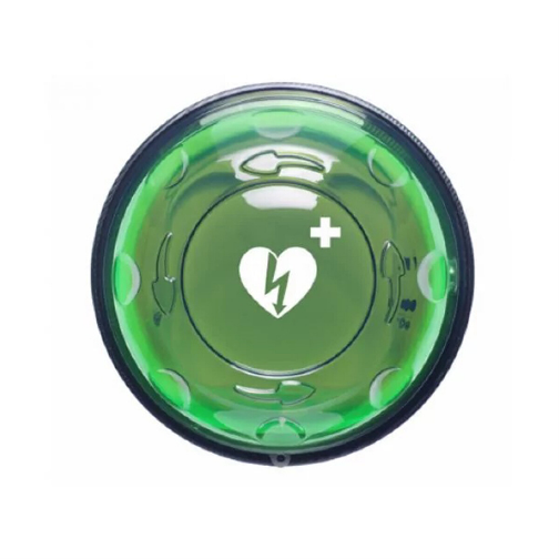 De kast heeft een opvallend rond design met een groot, internationaal herkenbaar AED-logo volgens ILCOR-richtlijnen. De ingebouwde LED-verlichting zorgt ervoor dat de kast ook in het donker goed zichtbaar is, wat de toegankelijkheid en vindbaarheid vergroot.